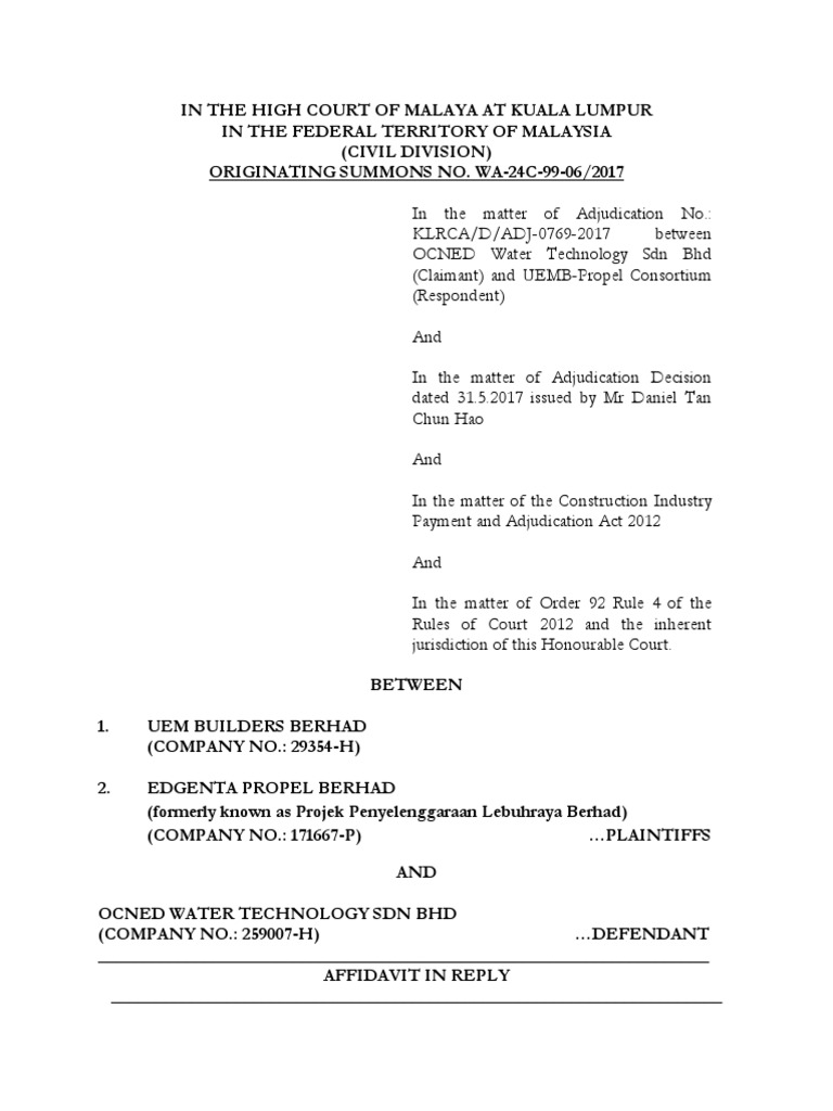 Affidavit In Reply Lecture Notes 6 In The High Court Of Malaya In Shah Alam In Shah Alam Studocu