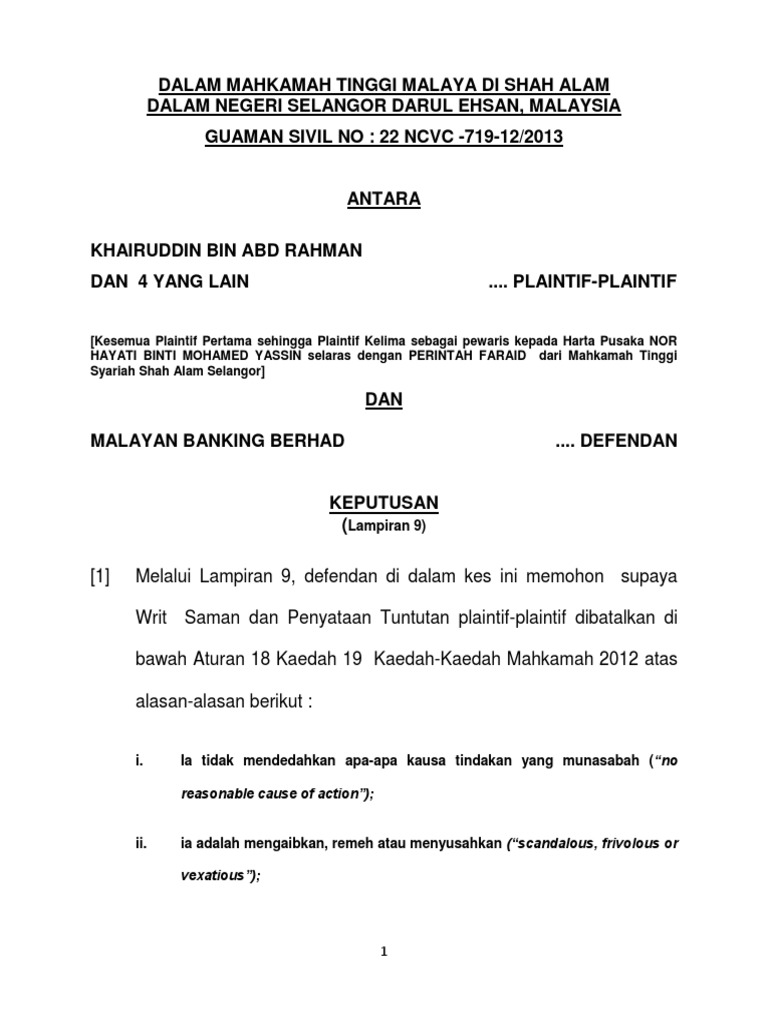 1 Perkara Di Hadapan Mahkamah Ialah Permohonan Oleh Plaintif
